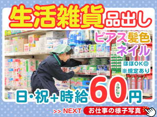 スーパーの陳列・補充スタッフ(日用品・雑貨)【アルバイト・パート】